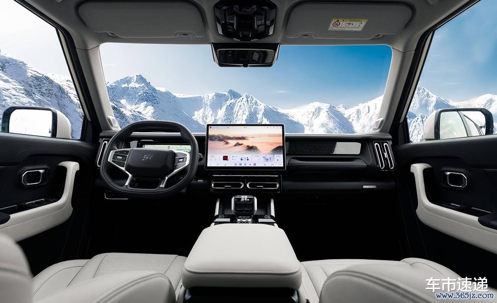拥有4706mm车长,轴距为2810mm的山海T1,车内采用了软质材料加以包裹,还有大量横平竖直的线条加以点缀,给人的印象也是属于硬派越野车的范畴。该车内饰布局规整,扁平的空调出风口,包裹性不错的座椅以及中控大屏等,既突出实用性也显示出一定的科技感。