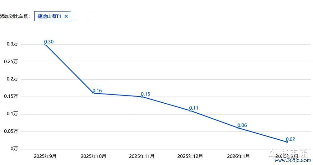 根据乘联会等公布的单车型销量显示,在过去的2025年,山海T1全年累计销量为22045台,去年7月份创下4300台左右的单月销量新高,紧接着单月销量就出现了阶梯式的一路下滑。2026年前两个月累计销量只有735台,其中,1月销量562台,2月销量173台。
