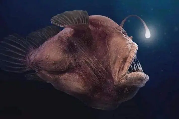 至于其他的深海动物,我们比如熟悉的鮟鱇鱼长这样: