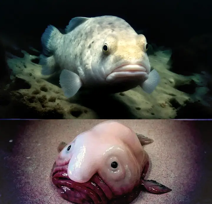 水滴鱼虽然我们看到的其实不是它本来的面貌,但长相也确实不敢恭维: