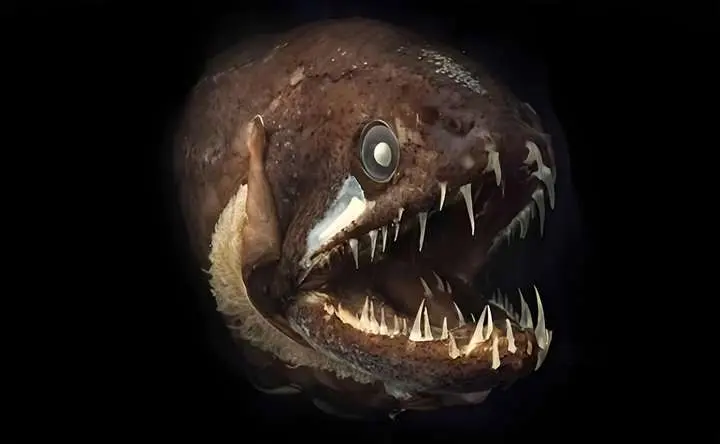 就深海的鱼类而言,还有一种鱼,它如果跟水滴鱼一样放到我们面前,我们会吓一大跳,不信你看: